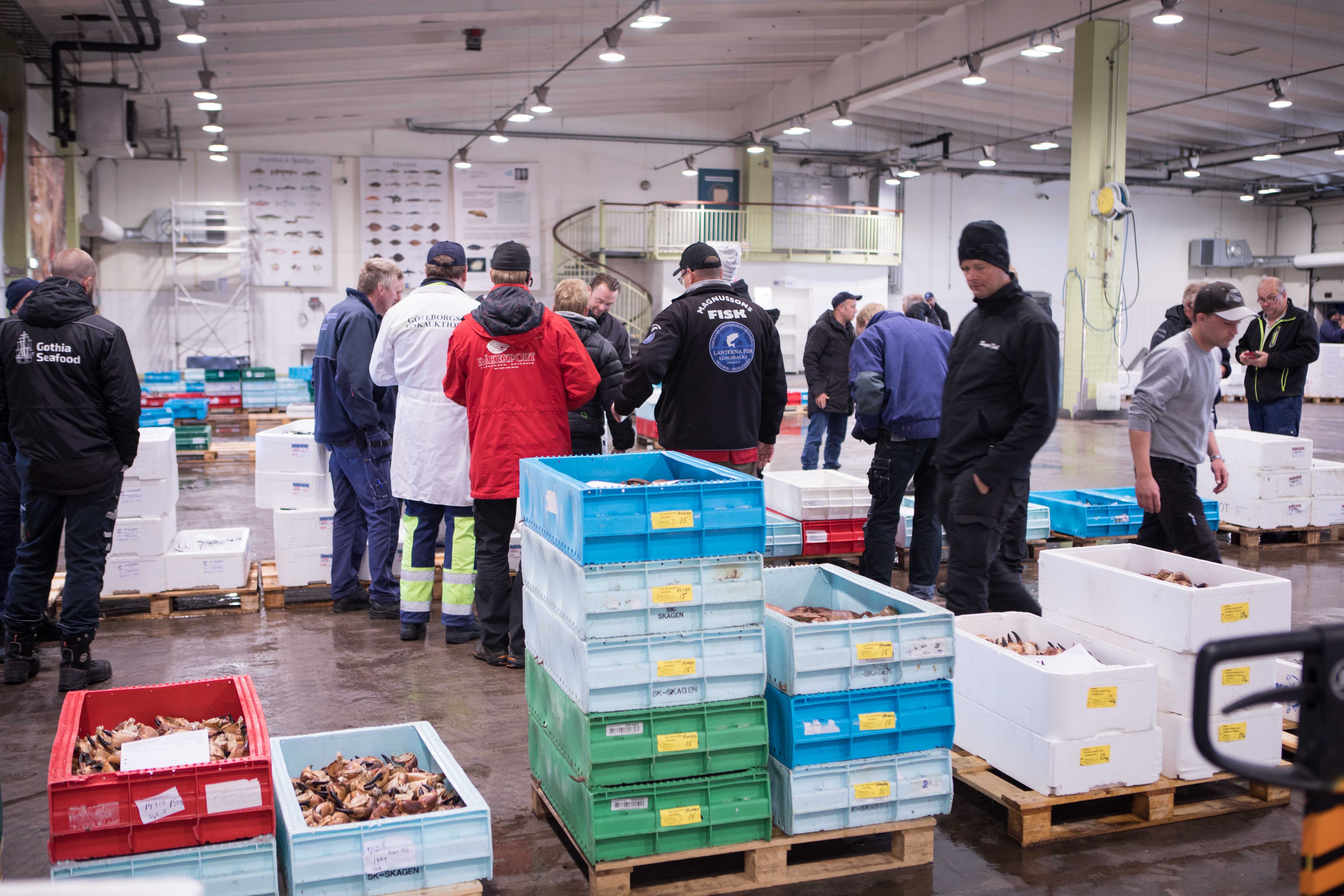 På Fiskauktionen i Göteborg säljs bara fisk som fiskats av fiskare och båtar som utgår från Göteborgs hamn.